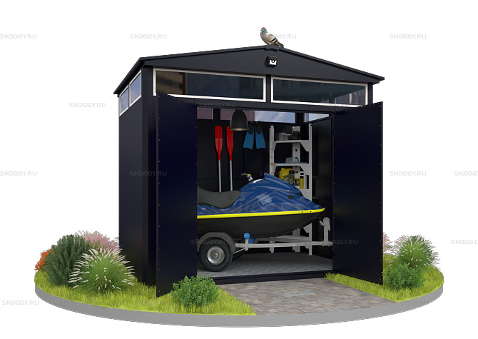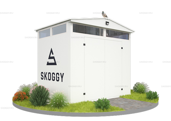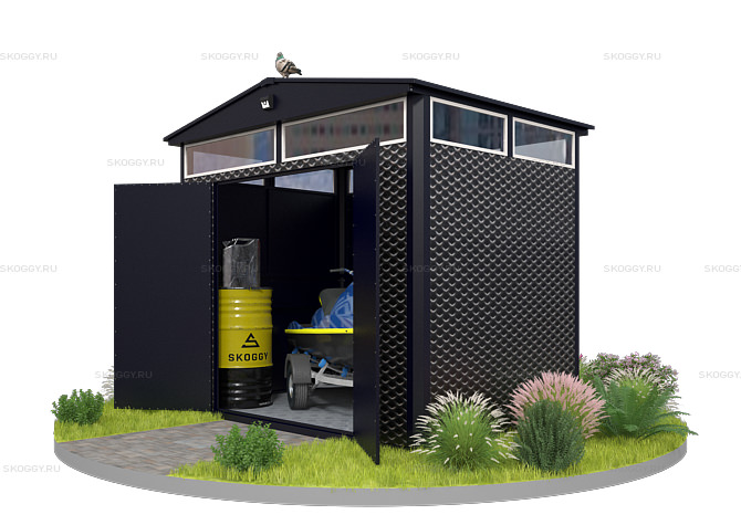 Мы обратились в компанию SKOGGY. За неделю нам всё изготовили, а сегодня привезли и буквально за два часа собрали. Так что, кому нужно быстрое готовое решение, обращайтесь. Можно хранить всё что угодно: технику, автомобили, колёса, лопаты, тачки. Вот такое решение.