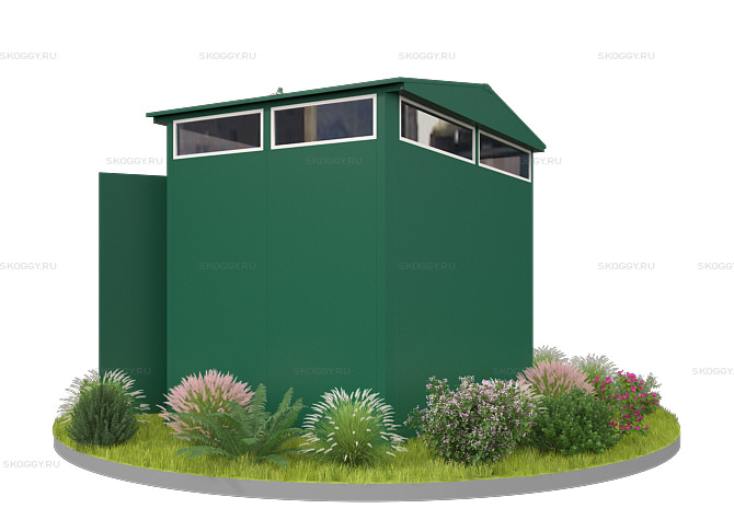 Хозблок с двускатной крышей можно использовать на любом участке. Вы сможете установить контейнер: