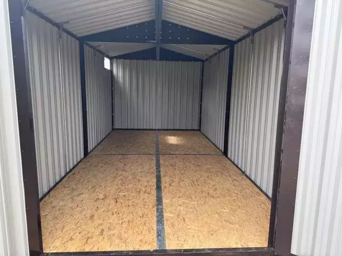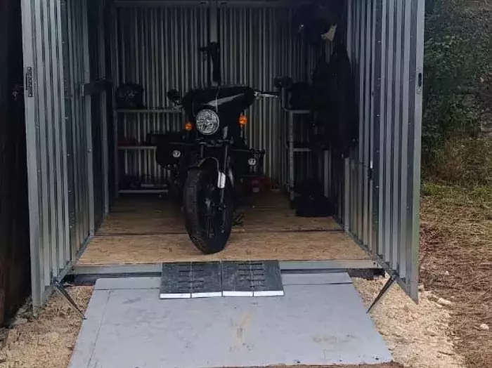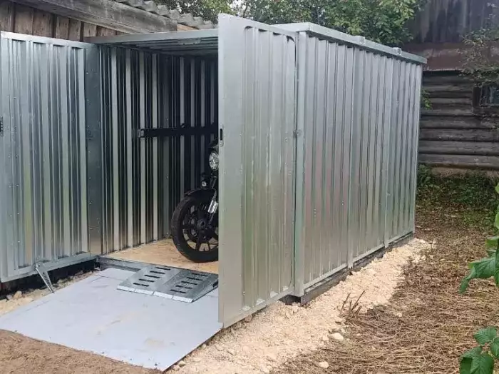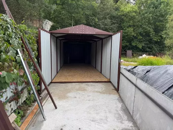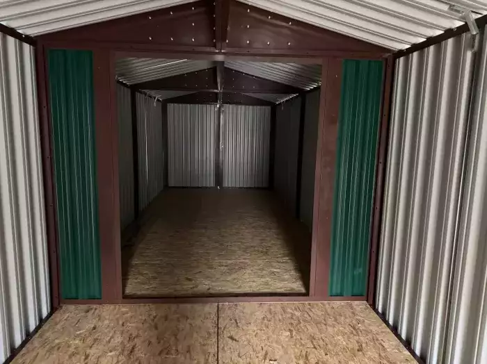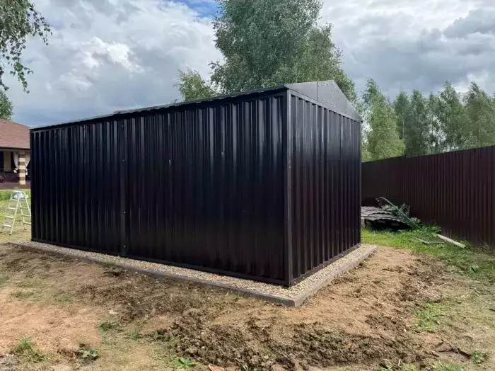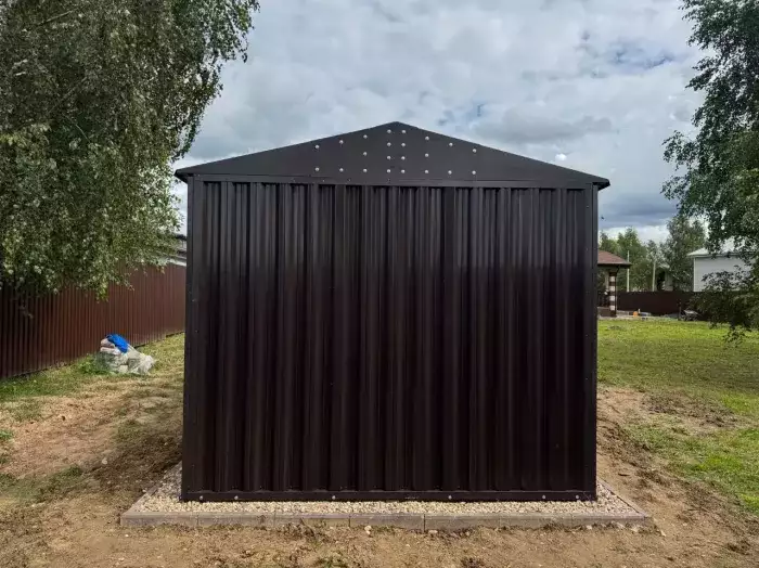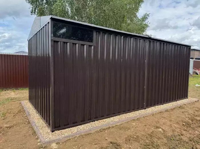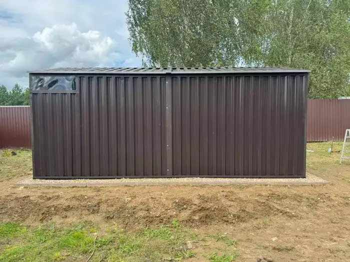 Мы остановились на варианте длиной в 5 метров. Для удобства использования выбрали рольставни и окрасили хозблок в приятный шоколадный цвет RAL 8017. Сборку произвели в течение двух часов и, конечно же, убрали за собой.