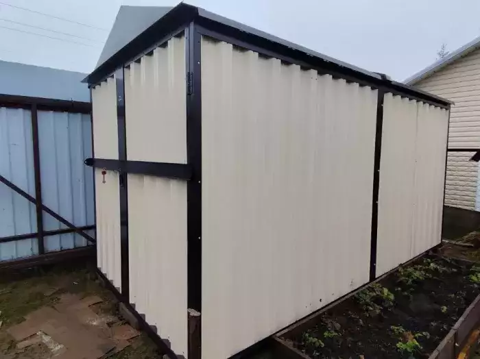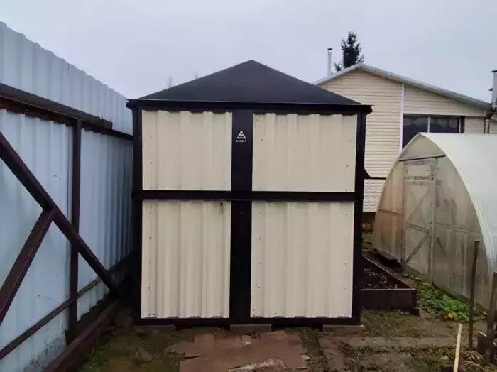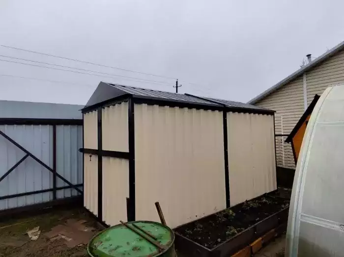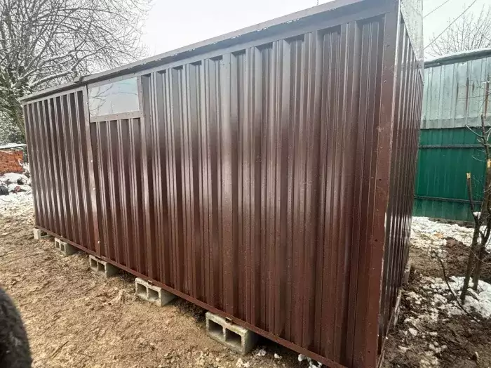 Изготовили конструкцию длиной 4 м с двускатной крышей и окном для дополнительного освещения. Особенностью выполненного проекта стал нанесенный на конструкцию принт с изображением героев из фильма «Звездные войны» с одной стороны и логотипом известной музыкальной группы «Король и Шут» – с другой. У хозяина участка отличный вкус! Получилось очень круто.