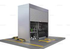 Поскольку изделия используются на площадках ограниченного размера, в них устанавливают не распашные двери, а удобные металлические рольставни. Их преимущество состоит в том, что не требуется дополнительное пространство для открытия створок. Автомобиль можно ставить практически вплотную к шкафу и при этом иметь полный доступ к вещам, находящимся внутри него. Плавный ход жалюзи, высокий уровень взломоустойчивости и комфорт в использовании – это основные отличительные черты подобного решения.